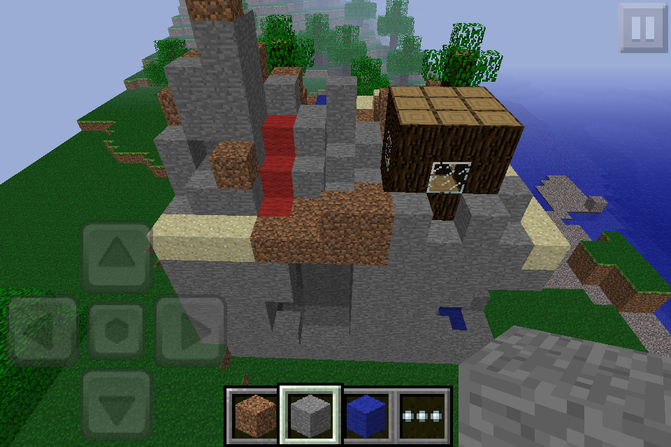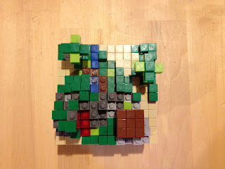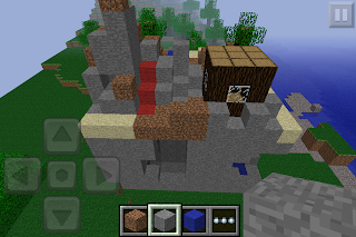 Earlier I posted some pictures of my Minecraft LEGO set. I had mentioned at the end of that post that I would be trying to take that LEGO set and build it in Minecraft: Pocket Edition. Well, to the best of my ability, I did. The LEGOs weren't to scale with the actual game, which made it a bit difficult to get everything the right size, but I think it turned out looking okay. On the left will be MCPE and on the right will be the LEGO set.