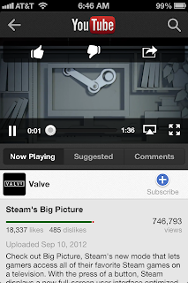 Next is Google's own YouTube app. In a blog awhile ago, I mentioned that the stock YouTube app no longer exists as of iOS 6. Google has responded by releasing an official (iPhone and iPod Touch only) YouTube app in the App Store. To say it's an improvement from Apple's stock one is a no-brainer, even the webapp was better than that.